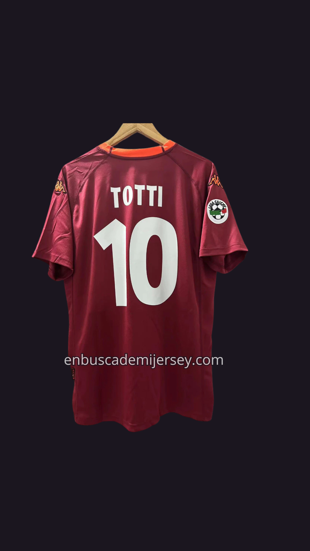 Usada por Francesco Totti, el ídolo eterno de la Loba, esta camiseta marcó el inicio de una era gloriosa, donde la Roma se preparaba para conquistar el Scudetto.