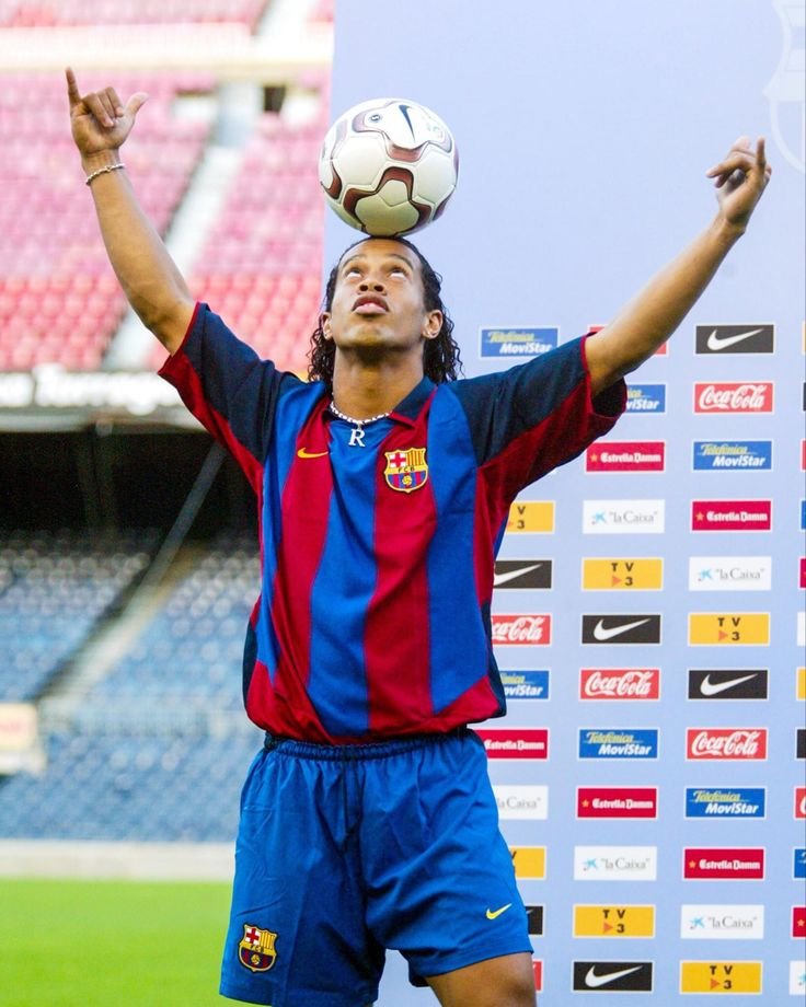 Ronaldinho, el mago brasileño, tomó el número 1️⃣0️⃣ y convirtió el Camp Nou en su escenario de magia y alegría. 🎩⚽✨