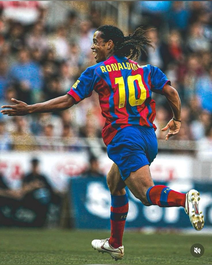 Con su toque eléctrico y su talento sin cadenas, Ronaldinho dibujaba túneles, bicicletas y goles imposibles. 🎨⚡