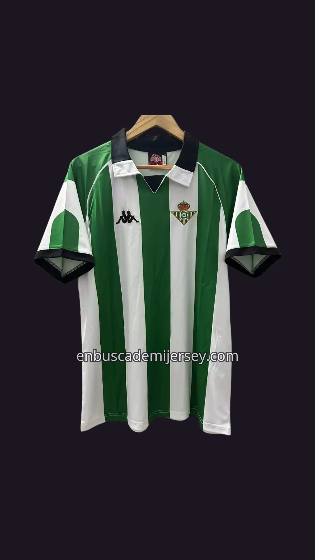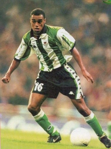 El jersey local 1998, con las clásicas franjas verdes y blancas, representa la identidad bética y el sueño de ver a uno de los talentos más habilidosos de su época vistiendo la camiseta verdiblanca. 💚🤍✨