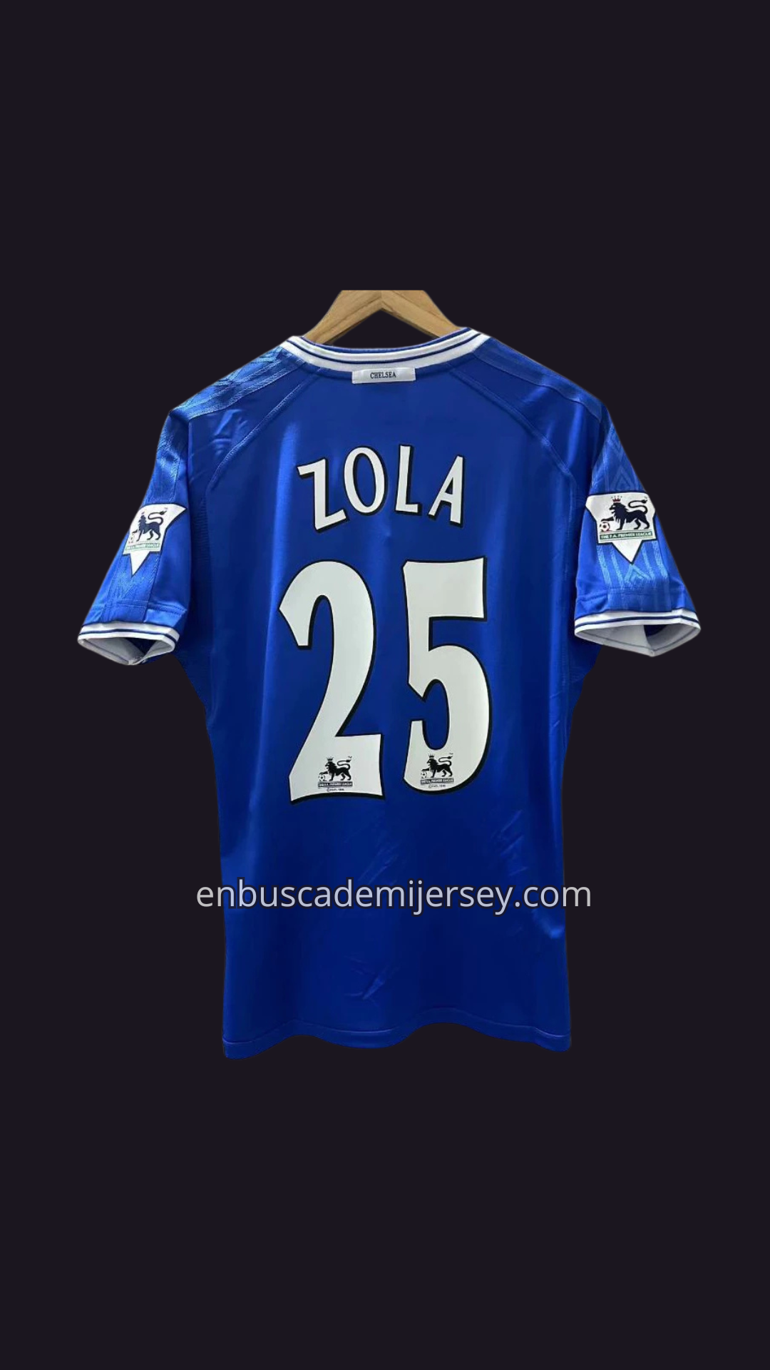 La camiseta que vio brillar al “Mago” Zola. Una reliquia de técnica, creatividad y elegancia que permanece inmortal en Stamford Bridge. 🌟⚽🎩