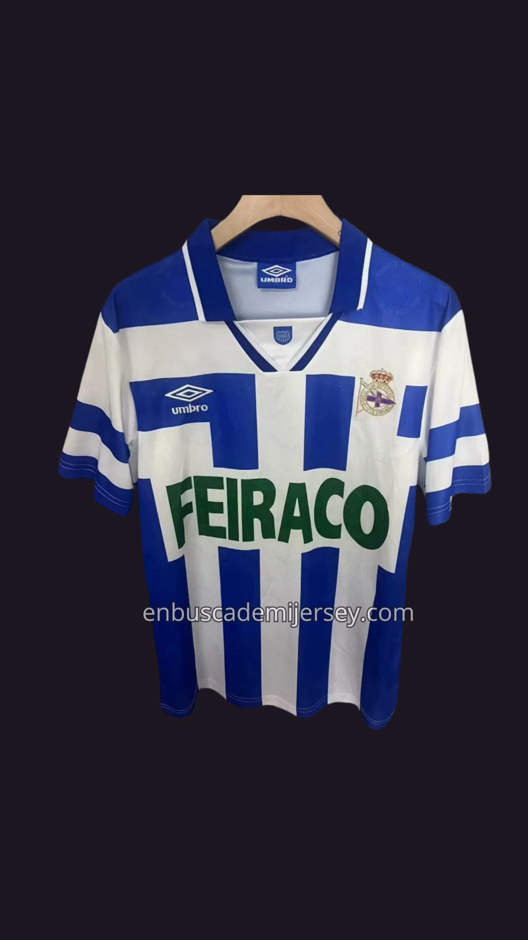 El jersey local de 1994, con sus clásicas franjas blancas y azules, es un homenaje al estadio de Riazor y a una afición que soñó con títulos y desafió a los gigantes del fútbol español. 🏆🌍