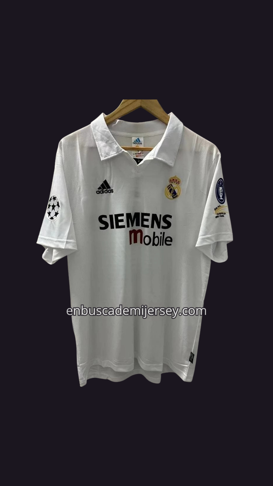👕 Este jersey local 2002, blanco inmaculado con detalles dorados y el escudo bordado, representa la elegancia y la historia de un Real Madrid dominante.