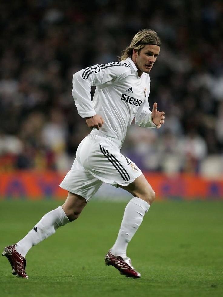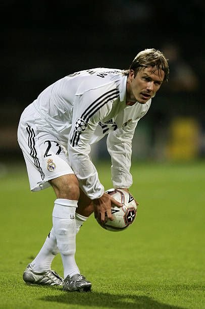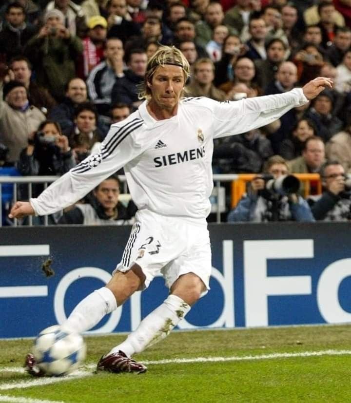 Vestido con el icónico blanco madridista, Beckham llevó al equipo a dominar Europa y España con clase y estilo. 🪽⚪✨