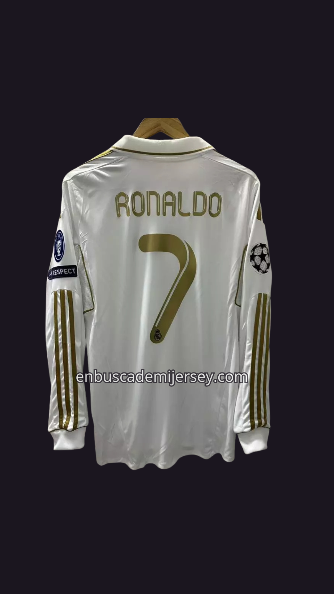 👕 Este jersey local 2011-12, blanco impecable con detalles dorados y el escudo bordado, simboliza el poderío de una máquina de goles en su mejor momento. ⚪🌟