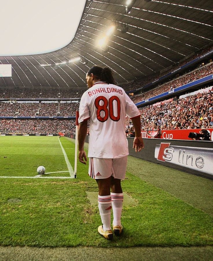 Ronaldinho, con el dorsal #80, fue más que un jugador: fue poesía sobre césped, un elegido que hacía temblar defensas con solo sonreír.