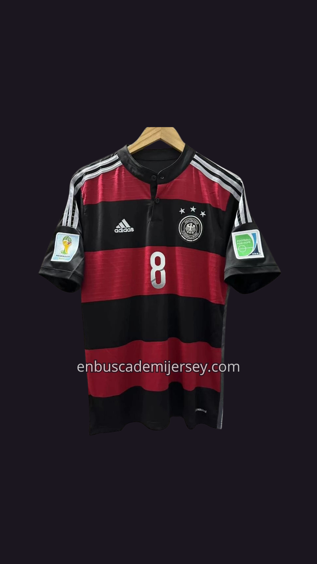 ✔ Diseño negro con franjas rojas horizontales